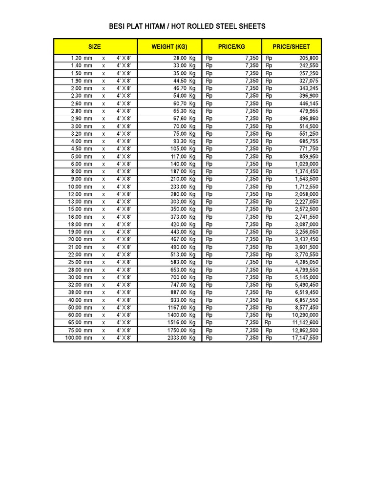 Tabel Berat Plat Besi Tabel Berat Plat Putih Tabel Berat Plat Kapal Pt Abadi Metal Utama
