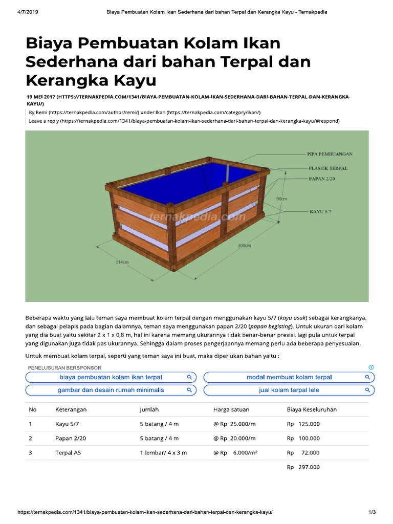 Biaya Pembuatan Kolam Ikan Dari Terpal