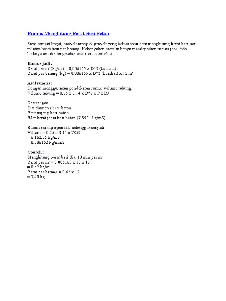 Rumus Menghitung Berat Besi Beton