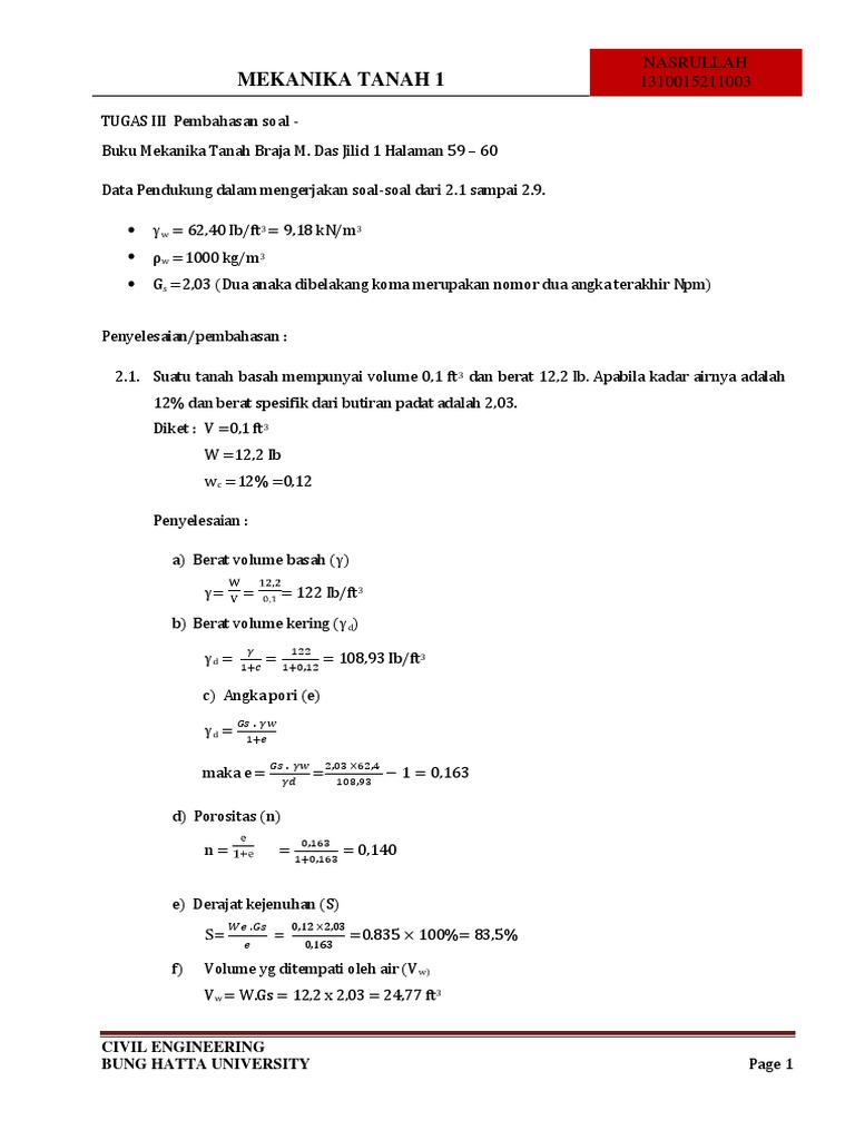 Contoh Soal Dan Jawaban Teknik Sipil Doc Contoh Soal Dan Jawaban Teknik Sipil Sumber Buku Paket Mekanika Tanah 1 Hary C Contoh Soal 3 1 Pada Kondisi Course Hero