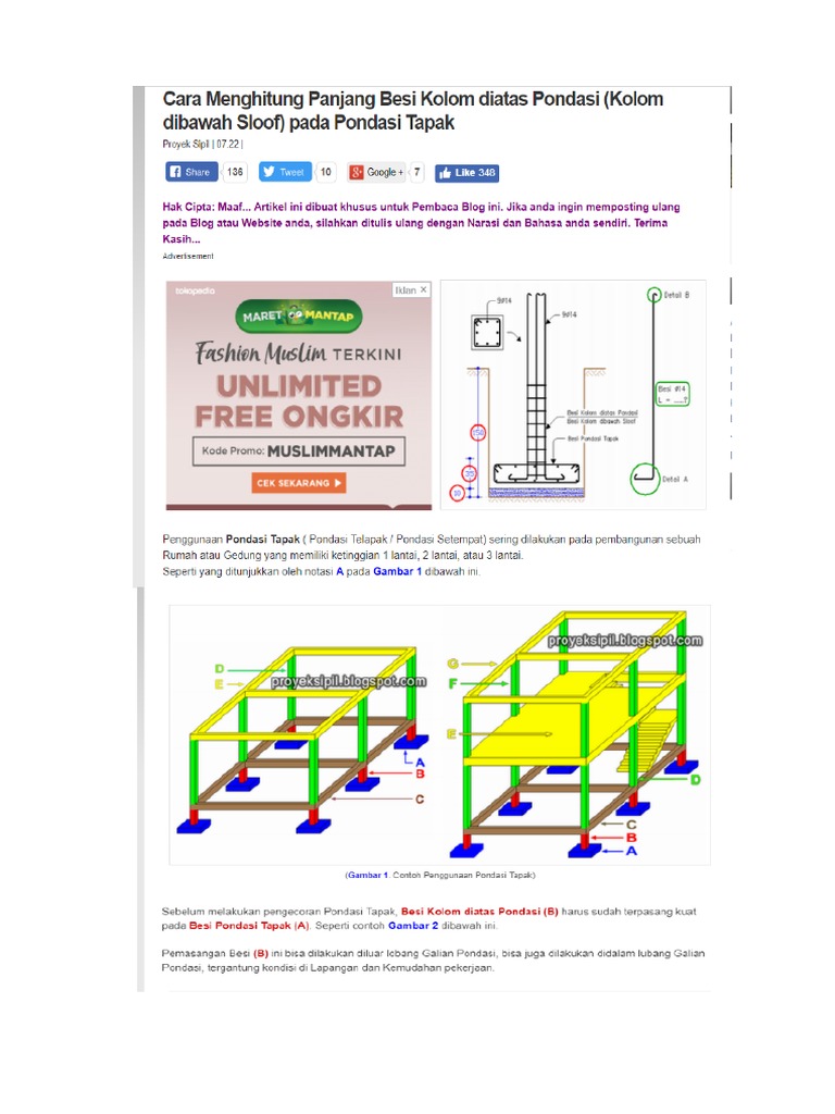 Cara Menghitung Panjang Besi Kolom Diatas Pondasi Tapak Kolom Dibawah Sloof Asdar Id