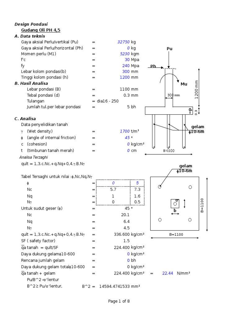 Perhitungan Pondasi Telapak Xls