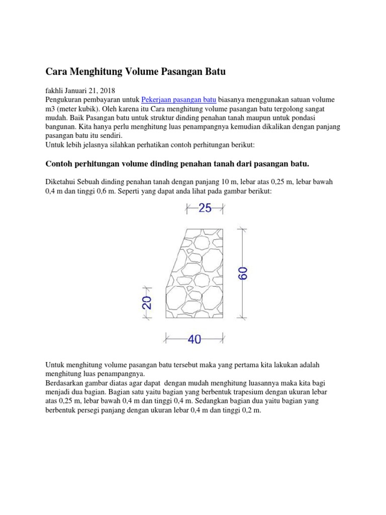Cara Menghitung Volume Pasangan Batu Kumpul Engineer