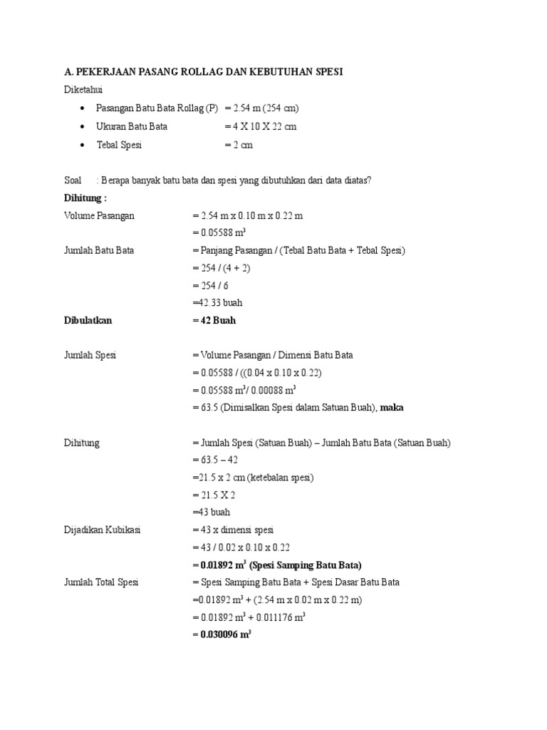 Perhitungan Jumlah Batu Bata Dalam Pembuatan Rollag