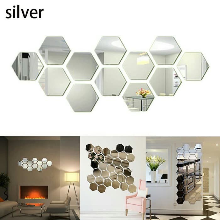 Cermin Kaca Hexagonal Segi Enam Hiasan Dinding 12pcs Silver Shopee Indonesia