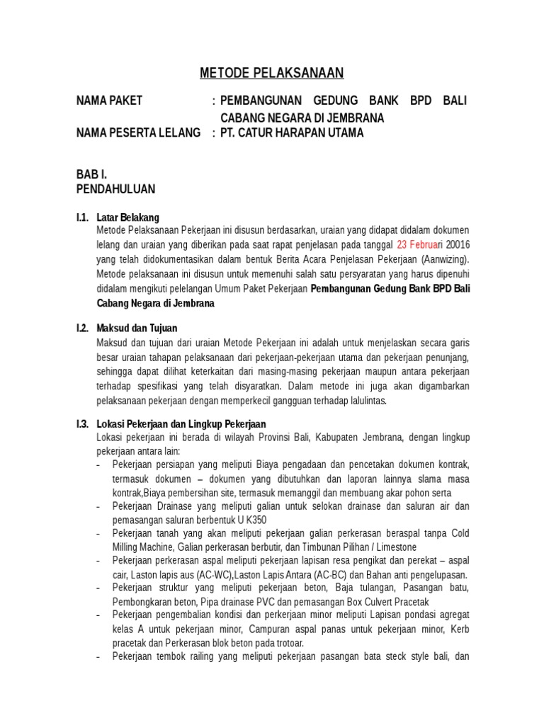 Pdf Metode Pelaksanaan Nama Pekerjaan Jasa Konstruksi Pembangunan Gedung Kantor Pelayanan Pajak Pratama Badung Utara Nama Peserta Lelang Pt Catur Harapan Utama Komang Tri Academia Edu