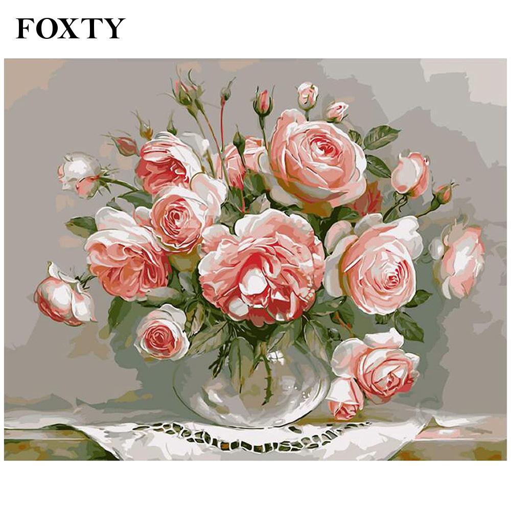 Diy Lukisan Cat Minyak Dengan Bahan Kanvas Dan Gambar Bunga Mawar Warna Pink Ukuran 40x50cm Shopee Indonesia