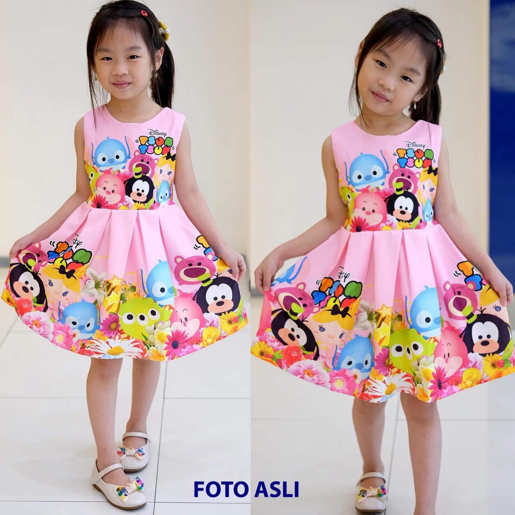 Dress Tsum Tsum Warna Pink Gaun Anak Perempuan Impor Branded Baju Terusan Anak Perempuan Gaun Pesta Shopee Indonesia