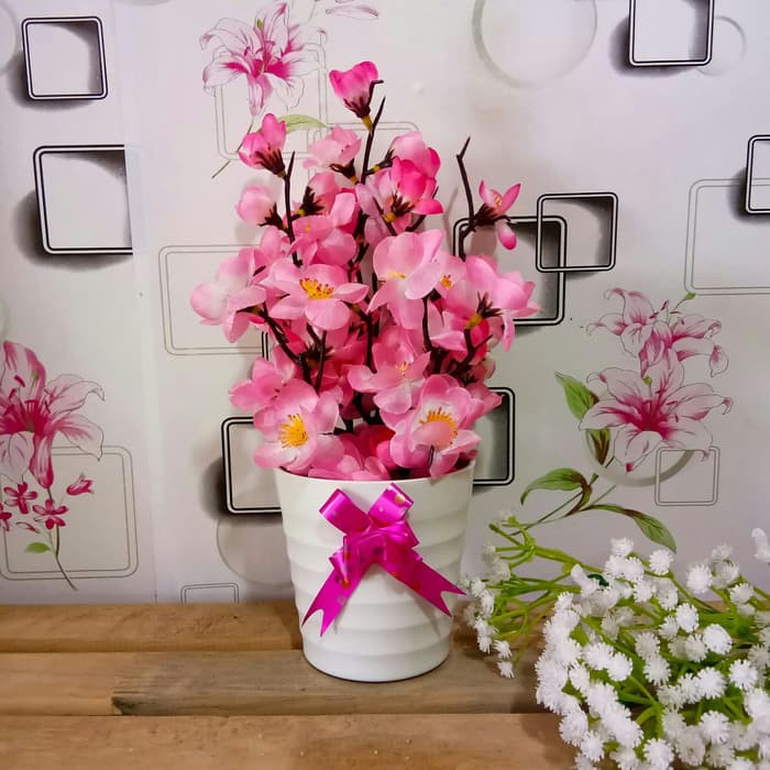 Bunga Sakura Vas Pita Tanaman Artificial Dekorasi Bunga Plastik Shopee Indonesia