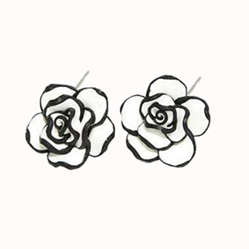 Anting Stud Wanita Desain Bunga Mawar Hitam Putih Shopee Indonesia