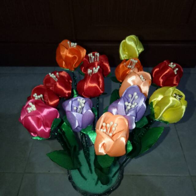 Bunga Tulip Pita Satin Cantik Shopee Indonesia