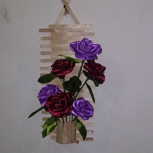 Hiasan Dinding Bunga Dari Bahan Stik Es Dan Pita Satin Shopee Indonesia