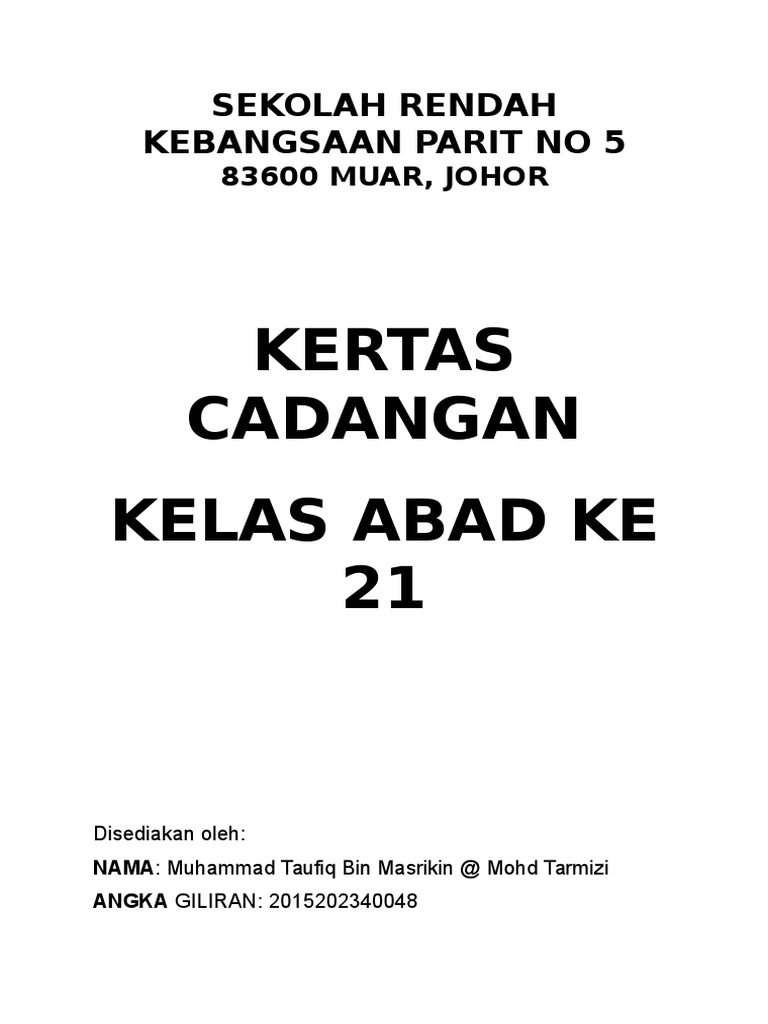Kertas Kerja Pertandingan Kelas Abad 21