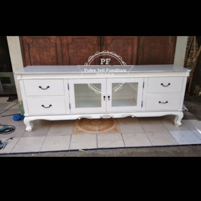 Bufet Meja Tivi Ruang Tamu Lemari Pendek Jati Warna Putih Shopee Indonesia