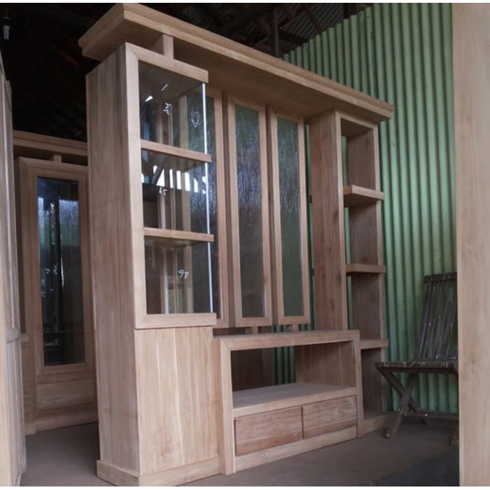 Mebel Jati Produksi Jepara Lemari Hias Rak Tv Penyekat Ruang Tamu Rak Boneka Bahan Kayu Jati Shopee Indonesia