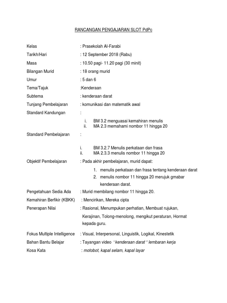 Rancangan Harian Slot Bahasa Dan Komunikasi Prasekolah Doc Document