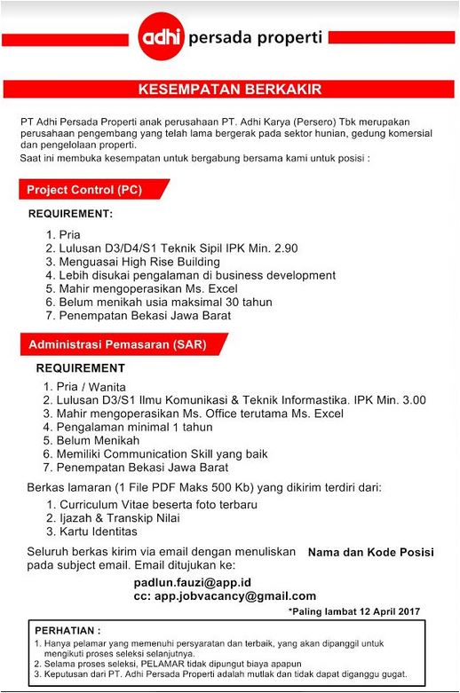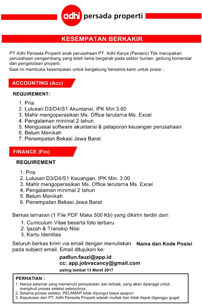 Lowongan Kerja Rekrutmen Lowongan Kerja Pt Adhi Persada Properti
