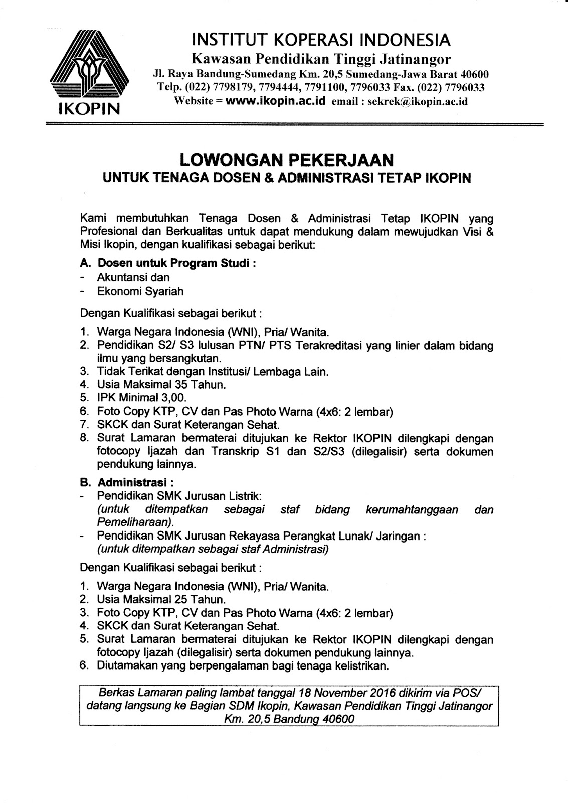 Lowongan Dosen Dan Tenaga Administrasi Ikopin Terbaru 2016 Cek Yuk Harian Blora