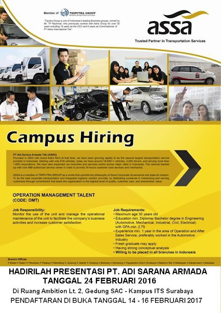 Lowongan Kerja Pt Adi Sarana Armada Tbk Assa Februari 2017