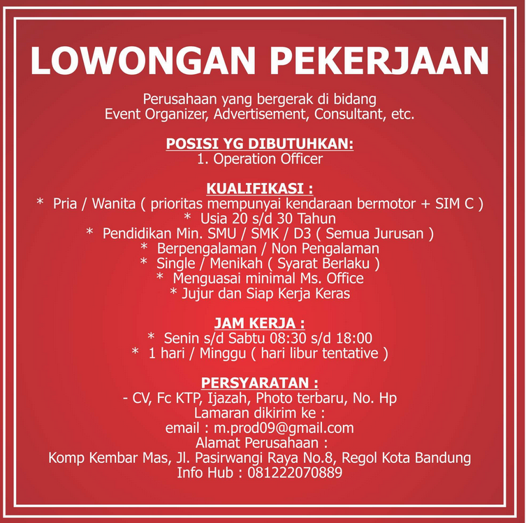 Lowongan Pekerjaan Perusahaan Yang Bergerak Di Bidang Event Organizer Advertisement Consultant Etc Lupy Hakim 2