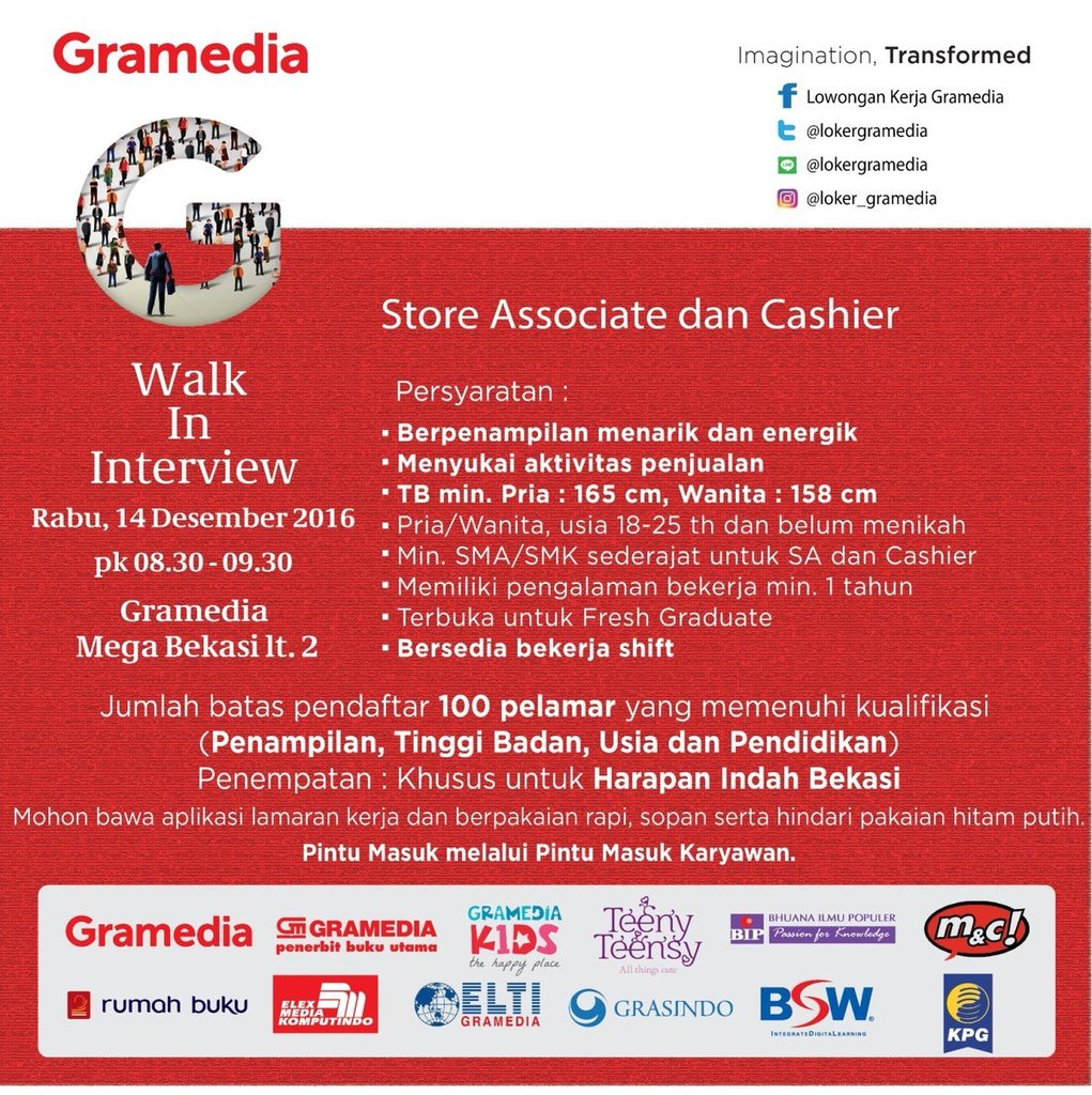 Hr Gramedia On Twitter Bekasi Walk In Interview Gramedia 14 Desember U Pramuniaga Dan Kasir Maks 100 Peserta Simak Poster Ini