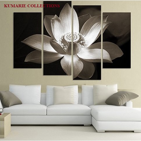 Lukisan Dinding Motif Bunga Teratai Bergaya Modern Model Tanpa Bingkai 4 Panels Shopee Indonesia