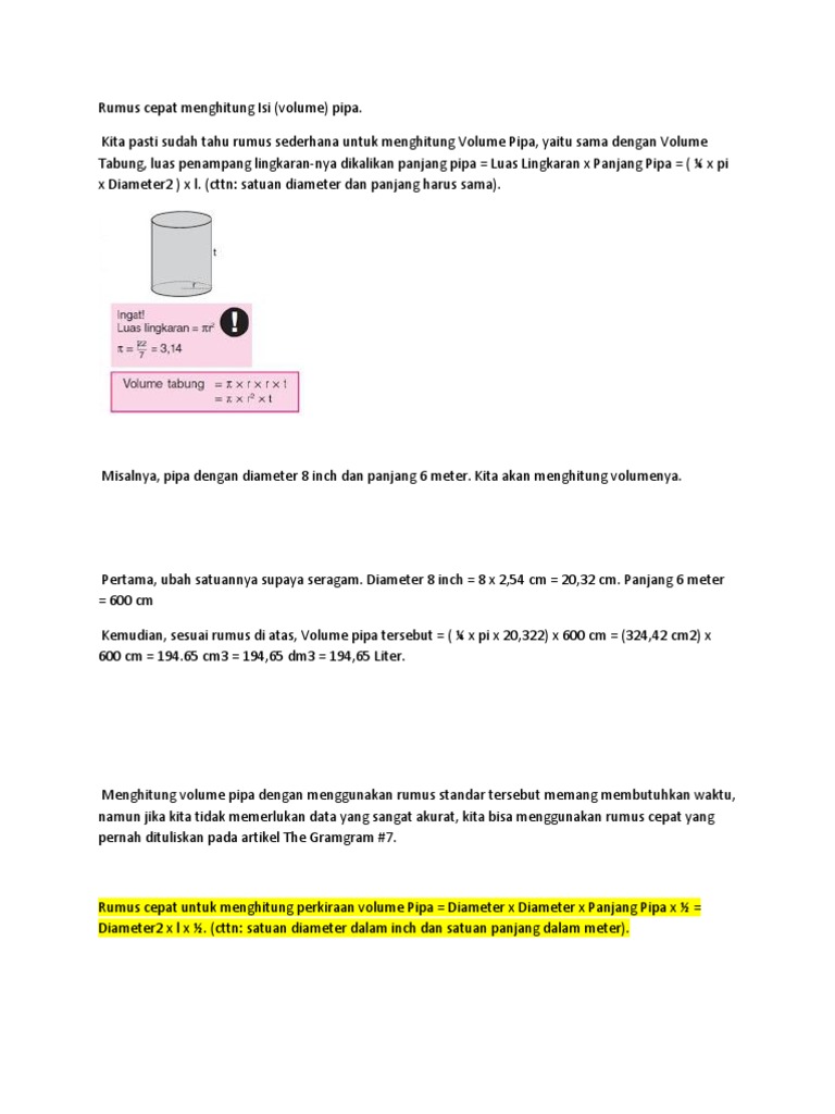 Catatan Rumus Cepat Menghitung Isi Volume Pipa