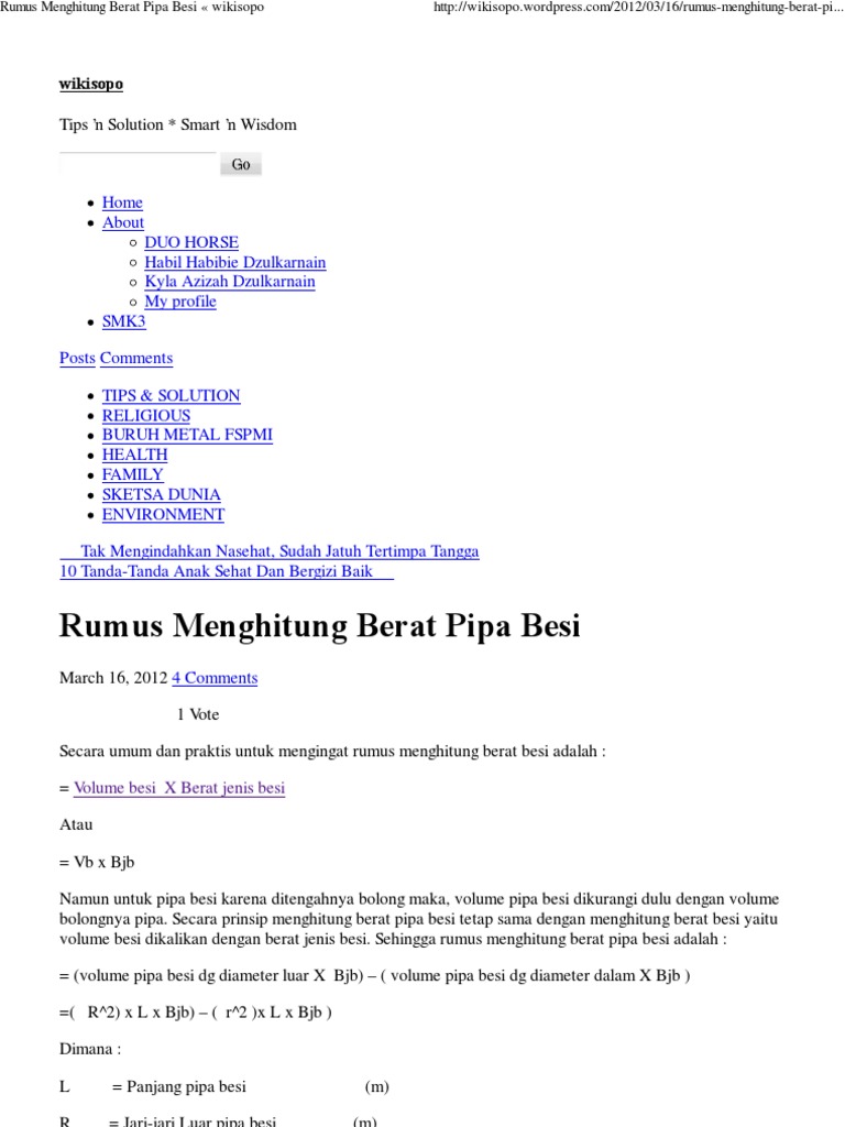 Rumus Menghitung Berat Pipa Besi Wikisopo