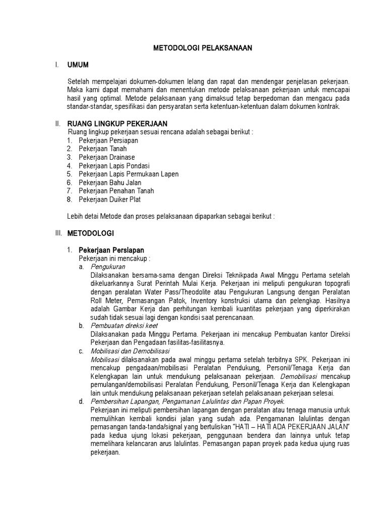 Contoh Metode Pelaksanaan Pekerjaan Jalan Raya