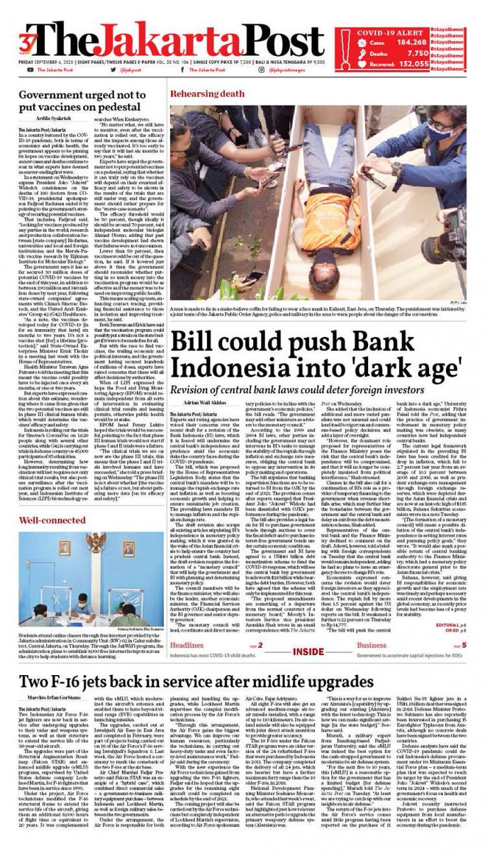 The Jakarta Post On Twitter Today S Paper Sep 4 2020 Jakpost Bill Could Push Bank Indonesia Into Dark Age Https T Co Rc6p6zi0ff Government Urged Not To Put Vaccines On Pedestal Https T Co Kxv0qnhf2z Two F 16 Jets