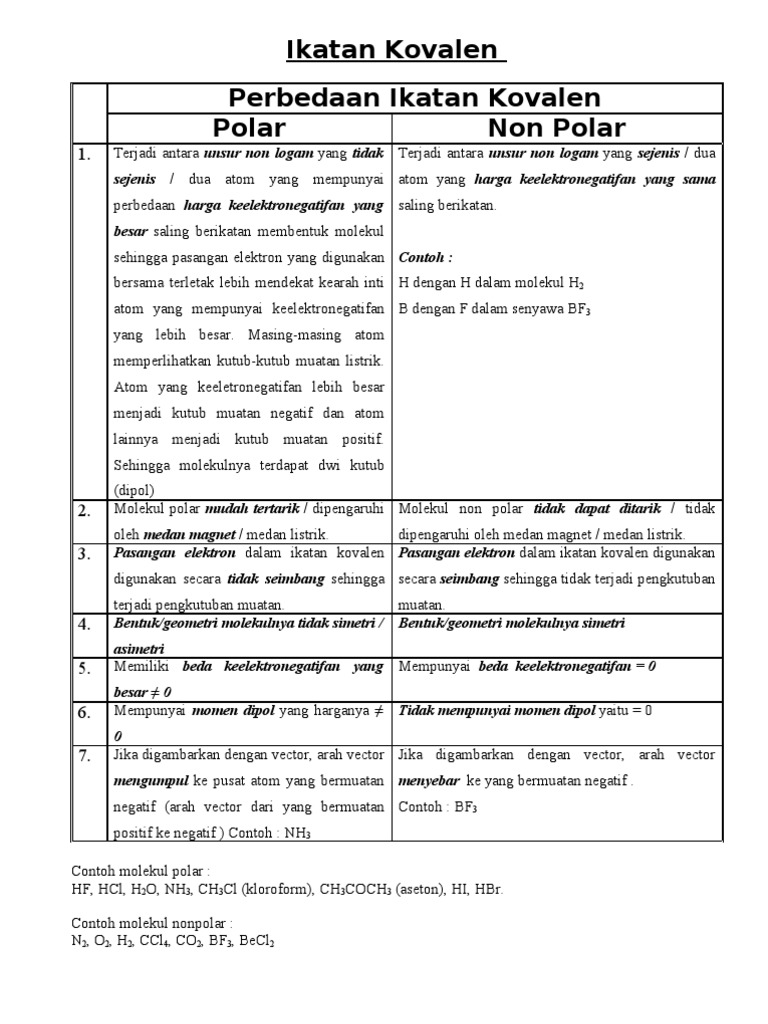 Perbedaan Senyawa Ion Kovalen Polar Dan Nonpolar Dalam Bentuk Tabel