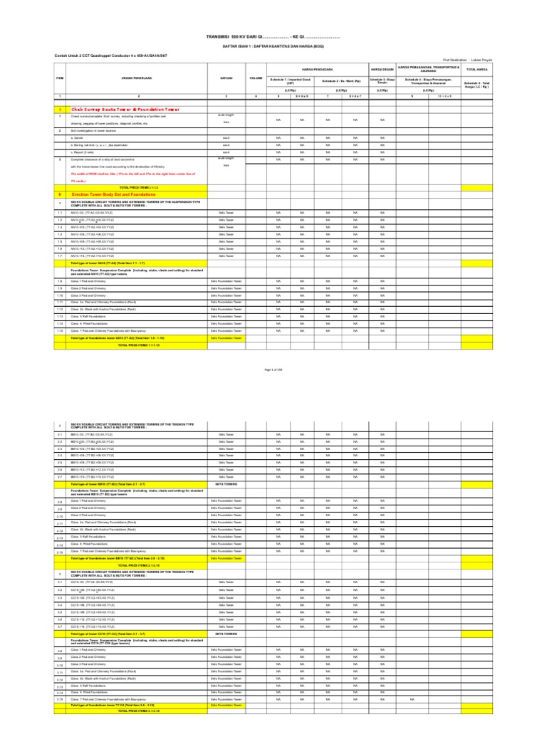 Boq Untuk Wbs Tl 150 Kv Bati Bati Incomer Kosonng Insulator Listrik Rekayasa Struktural