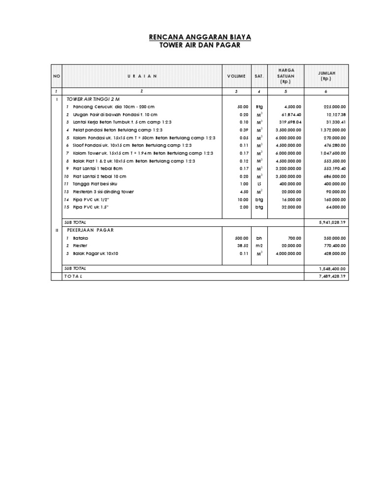 Menghitung Kebutuhan Semen Pasir Dan Koral Untuk Pondasi Tower Ilmurumah Com