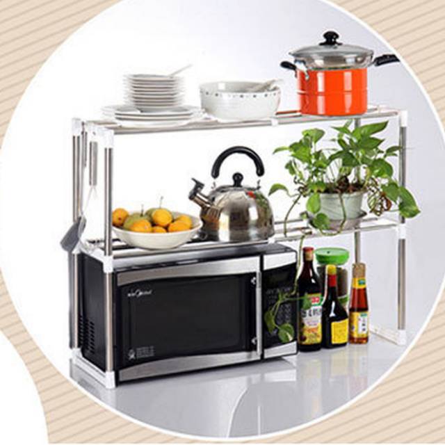 Rak Microwave Oven Stainless Dapur 2 Susun Serbaguna Tempat Penyimpanan Alat Peralatan Memasak Shopee Indonesia