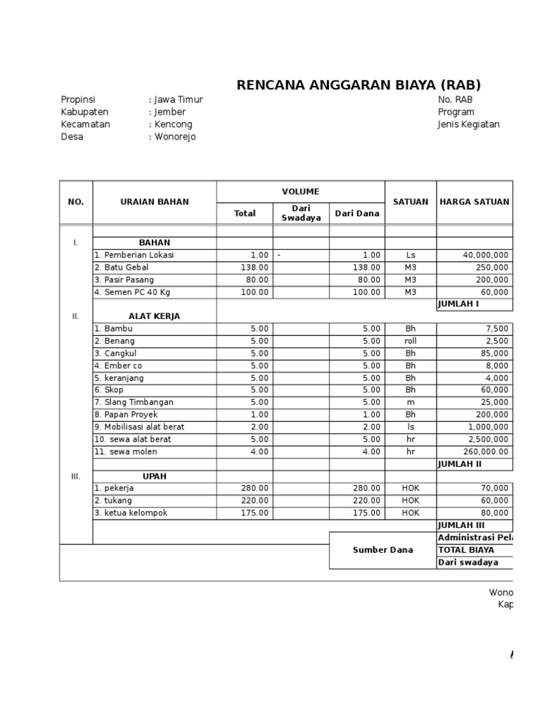 Rencana Anggaran Biaya Gombal Mukiyo Academia Edu