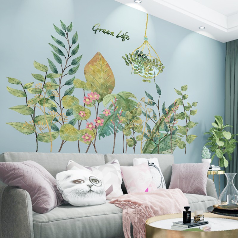 Nordic Angin Tanaman Stiker Dinding Ruang Tamu Sofa Latar Belakang Hiasan Dinding Kertas Dinding Segar Kecil 3d Tiga Dimensi Diri Perekat Wallpaper Shopee Indonesia