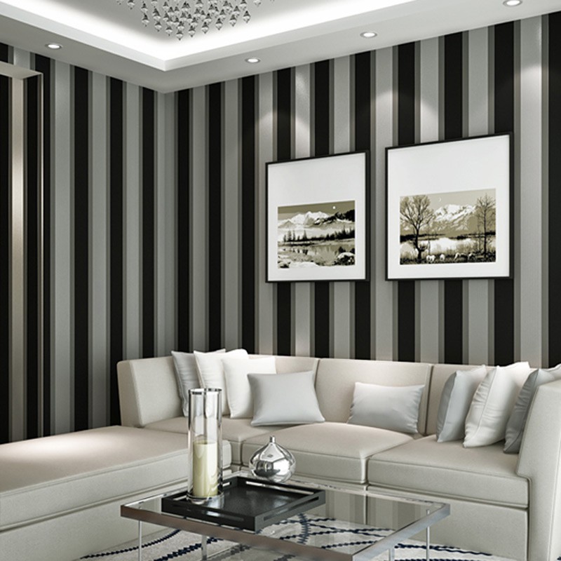 Modern Minimalis Bergaris Hitam Dan Putih Non Woven Wallpaper Rumah Kamar Tidur Ruang Tv Latar Belak Shopee Indonesia